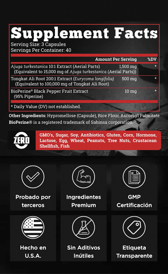 No se han reportado efectos secundarios graves cuando se sigue la dosis recomendada. Es más seguro que los esteroides o potenciadores sexuales y no altera el equilibrio hormonal natural.